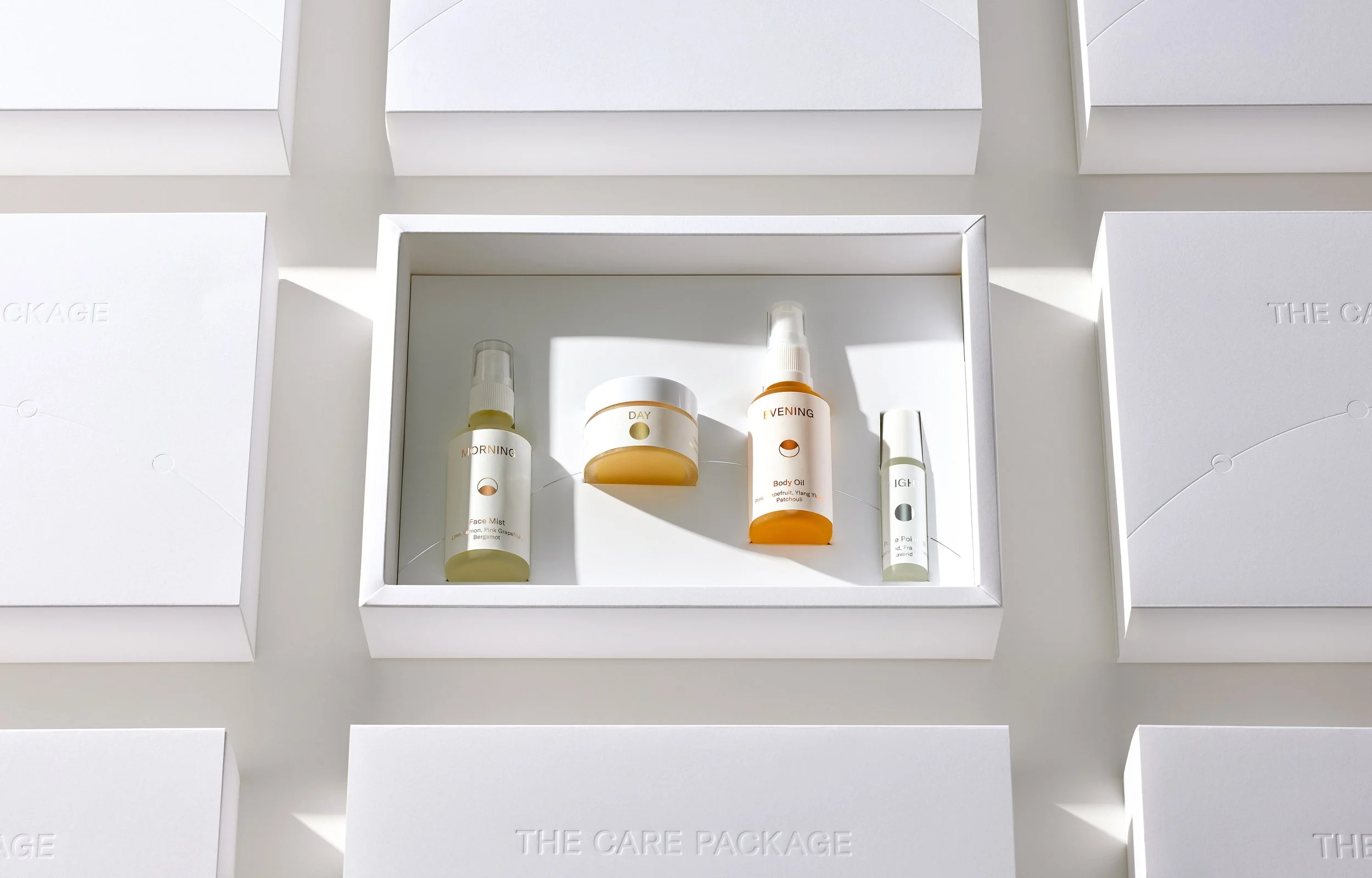 Care is a universal language and a powerful design principle. Our idea was to embrace and amplify the simplicity inherent in the name – ‘The Care Package’ – and allow our clients and agency peers to feel a precious moment of self-care, regardless of whether they were established enthusiasts or first-time triers. It was our vision to deliver an elegantly undemanding package that felt luxurious and provided relief and relaxation at each arc of the day.